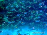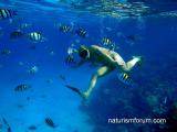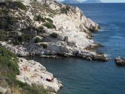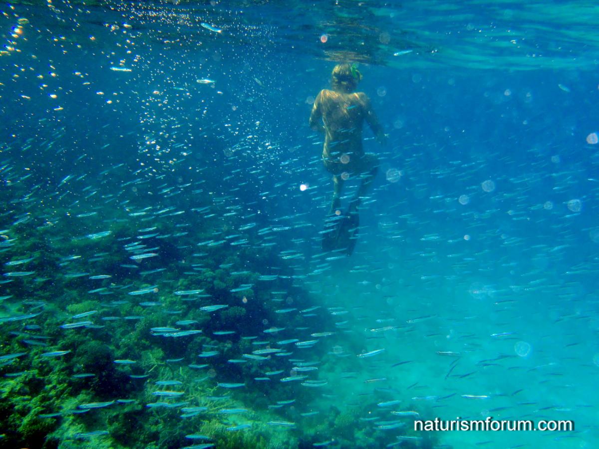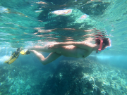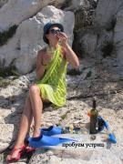 Сноркал я с ножом и сеткой, нарезал устриц, сначала мелких, а затем изловчился нырять поглубже и нарезал крупных. А на скалах меня уже ждала Света с вином и лимонами. Так мы впервые полакомились экзотическим продуктом. Адриатика умеет радовать. Море ласковое и очень прозрачное. Красота подводного мира не такая броская, как в Красном, но тоже богата животным миром.