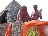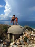 Как же это величественно, когда зарождается и развивается средиземноморский шторм! Пока мы стояли на пляже и загипнотизировано наблюдали за мощными облаками, оказалось, что у нас катастрофически не хватает времени на уборку нашего лагеря по штормовому расписанию согласно судового устава корабельной службы. Мы все ринулись спасать имущество и швартовать концы палатки на кнехты-колышки. Делать бруствер из гравия ниже ватерлинии и выбирать якоря с полотенцами. И вот он – первый удар ветра с дождем и гравием по нашим голым задам. Девки рванули в трюм и, задраив все люки, стали держать палатку изнутри. А я на правах капитана вцепился в особо уязвимое место нашего ковчега, удерживал рвущуюся из рук стропу и несущие латы палатки. Ветром оторвало половину дерева, растущего на нашем участке, и швырнуло между машиной и палаткой. Картина как при апокалипсисе: все голые, мокрые и напуганные, вокруг орут терпящие бедствие немцы. Каждый спасает свой лагерь. Наши соседи, за что им спасибо, помогли мне, дали еще кольев, молот и еще зачем-то предлагали мне пиво. Ладно бы самогон, а то пиво. Немцы, одним словом, что с них взять. Затем мы всей голытьбой уволокли остатки дерева. Всю ночь еще не стихал ветер. Мы выстояли!