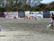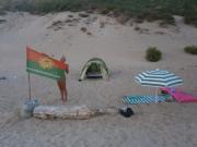 По приезду мы выбрали себе не самое тенистое место. Потому что удобные места, как правило, разбираются с самого раннего утра. Но десять квадратных метров, изгородь из лаврового листа, электричество, вода и бытовой комплекс рядом нас вполне устроили. До пляжа сто метров, до маркета триста. Затем мы таки перебрались на соседний более тенистый участок.