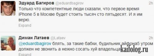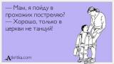 Ладно, пошли, только в гамаке. И - стоя.--------------------Если длинноногая официантка предложит вам сделать «пържени яйца на очи» — не отказывайтесь! Это всего лишь яичница — глазунья.-------------------Займись собой, а то через 5 лет придётся ставить котика на аватарку.-------------------Интеллигенты